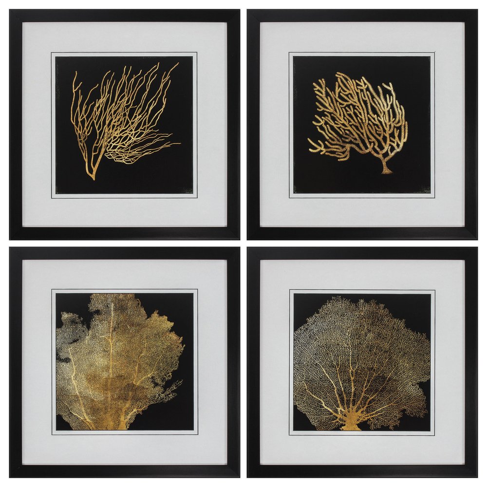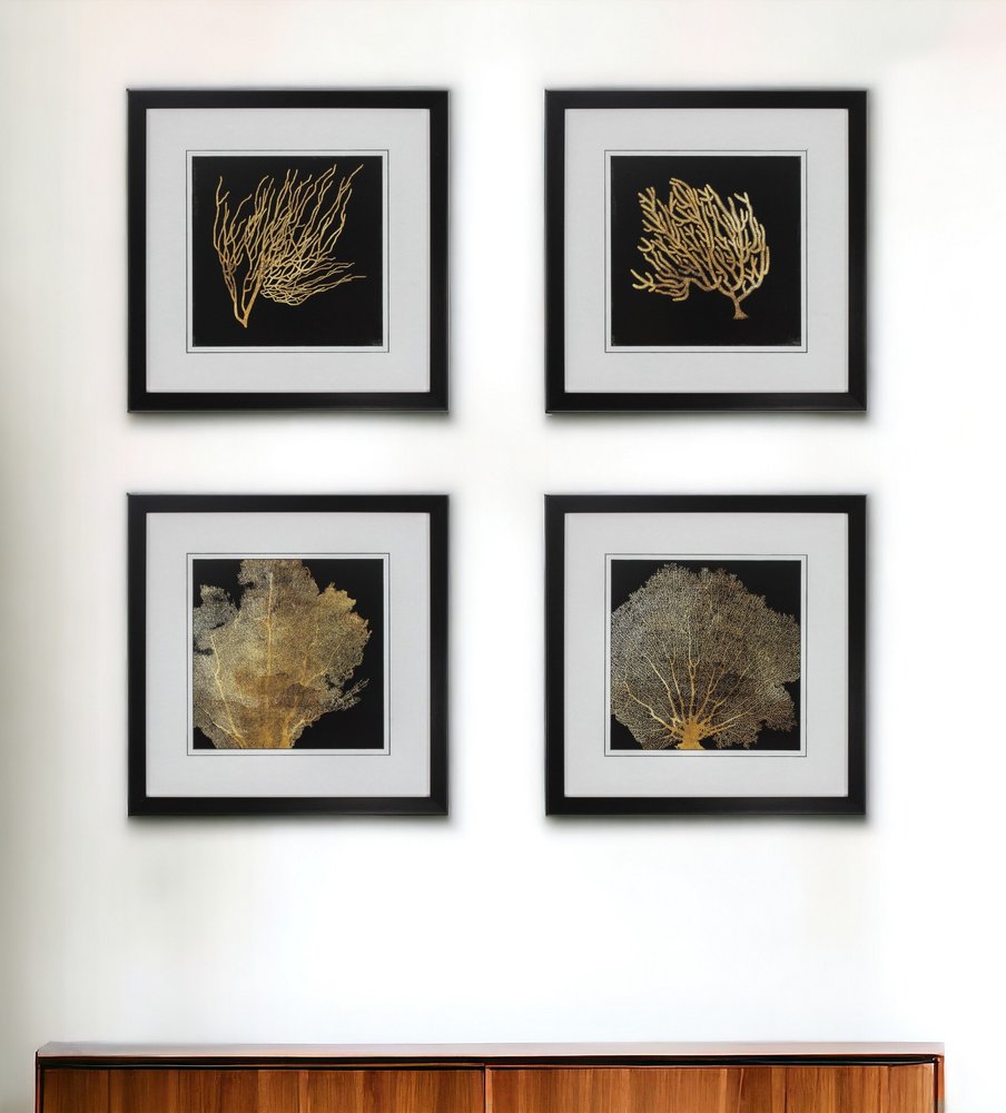 20" X 20" Dark Wood Toned Frame Coral (Set Of 4)