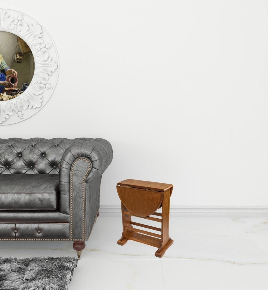 Optimize your space and add some charm to your room with the 21" brown solid wood oval drop leaf end table. It is crafted out of solid wood to create an inspiring atmosphere in any room. This table is made from solid and natural teak in a brown color throughout the base and top. Side tables are a great way to flank your sofa, use as an accent next to your favorite chair, or can even be used bedside. This versatile table is a great accent for almost any room. 20.50" H x 27.75" W x 18.50" D