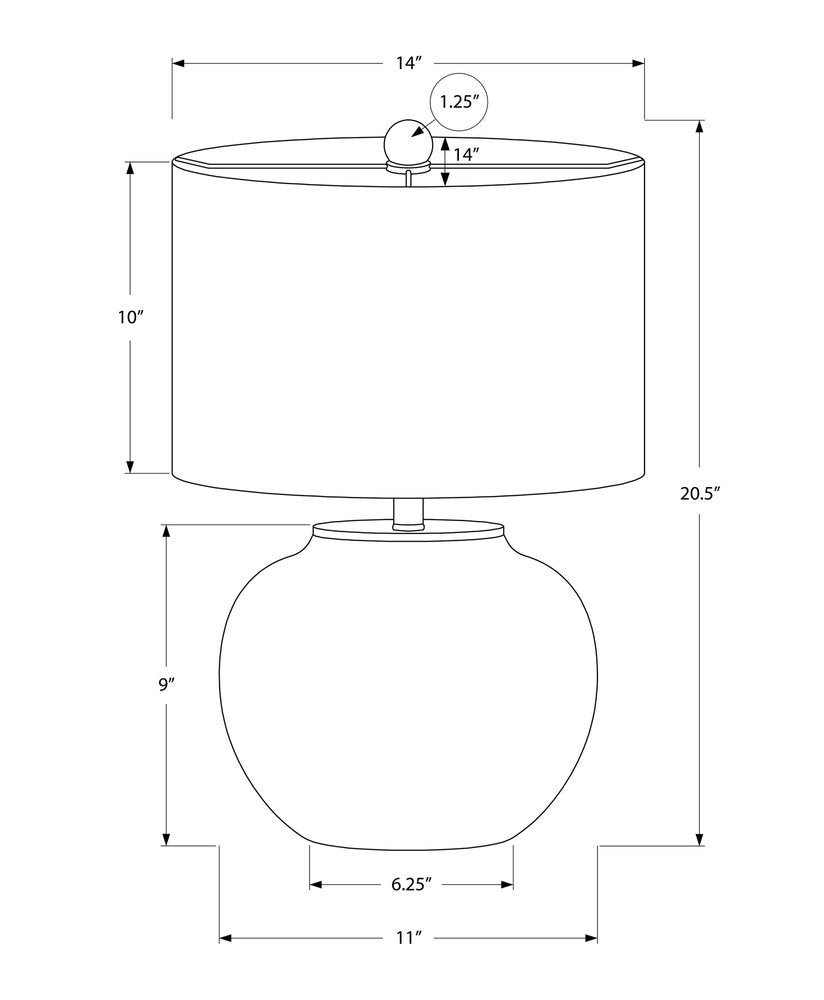 Bring of level of elegance and freshness to your space with this high quality 21-inch cream ceramic round table lamp with cream drum shade. The base of this lamp is made of cream ceramic. The cream shade has a drum shape and is made from fabric. This standard table lamp is designed to provide general lighting to the area. Use this lamp anywhere and elevate the look of the whole space. The perfect lamp to create just the right natural and soothing light in your space. 20.5-inch H x 14-inch W x 14-inch D