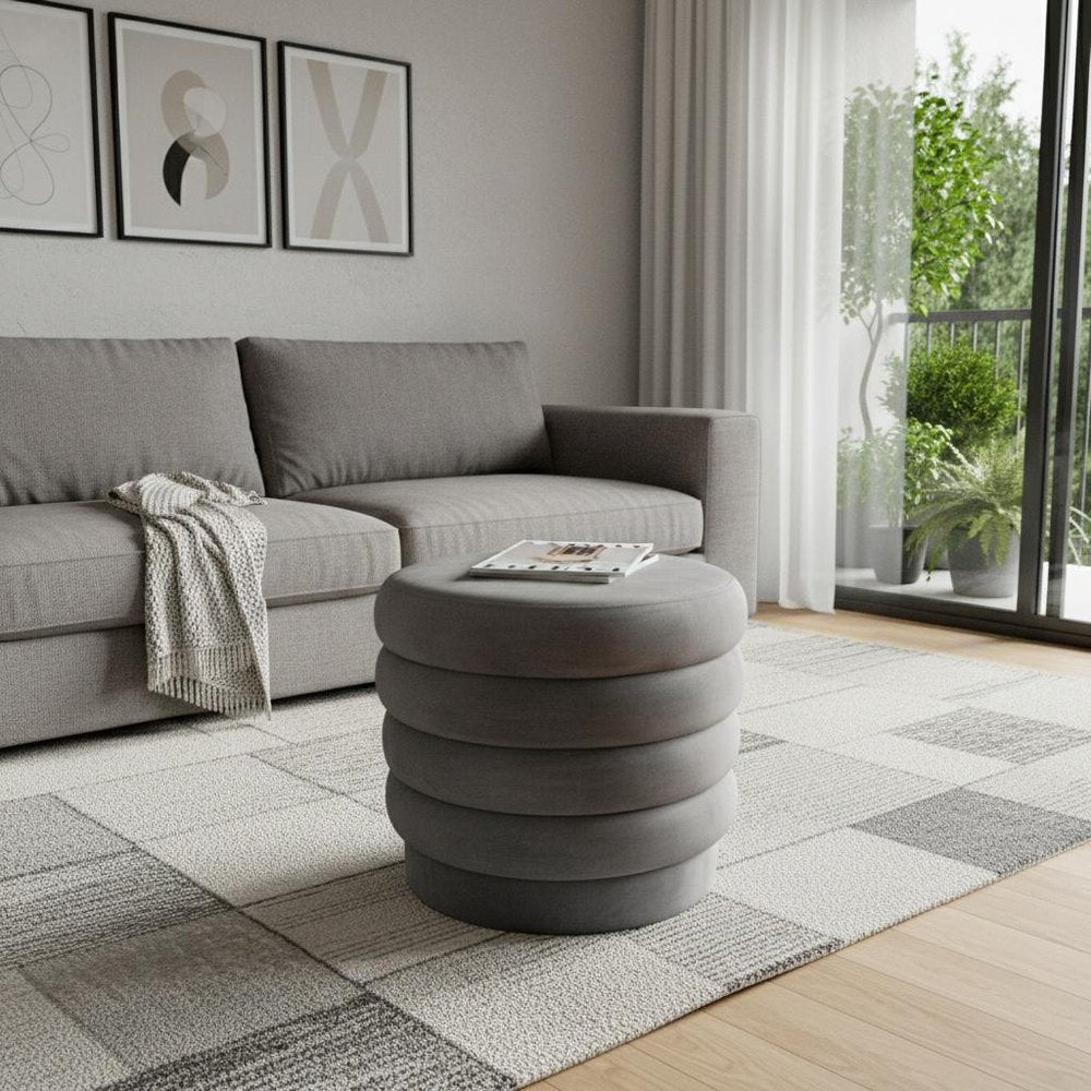 21" Gray Velvet Tufted Round Cocktail Ottoman