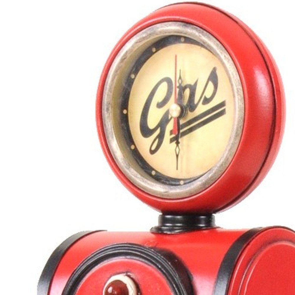 21" Red Metal Hand Painted Gas Pump Clock Sculpture