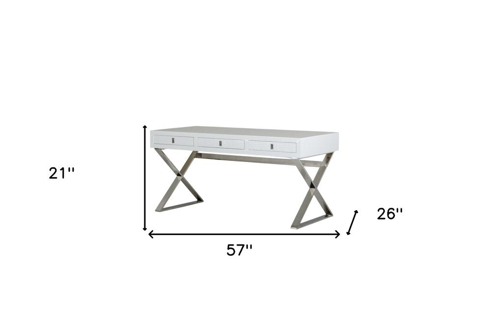 21" White Crocodile Mdf And Steel Desk