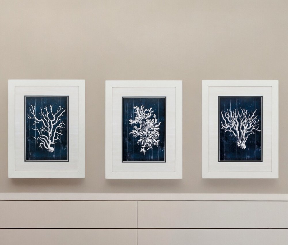 21" X 27" White Frame Wood Coral Blue (Set Of 3)