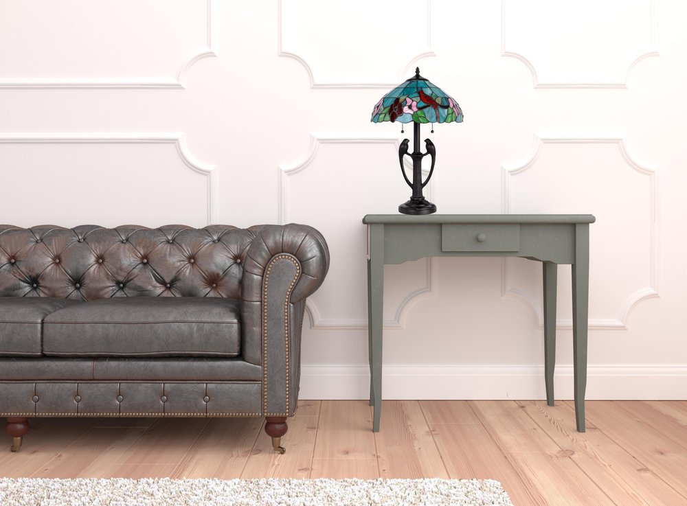 Embrace the good life with this hard working and stylish 22" bronze two light tiffany style table lamp with aqua and red floral shade. A gorgeous bronze resin base and a beautiful Cardinal and Floral painted glass shade brings just the right amount of pizzazz to this fabulous lamp. The aqua shade has a dome shape and is made from glass. Use this lamp anywhere and elevate the look of the whole space. It is perfect for virtually any decor. 22" H x 14" W x 14" D