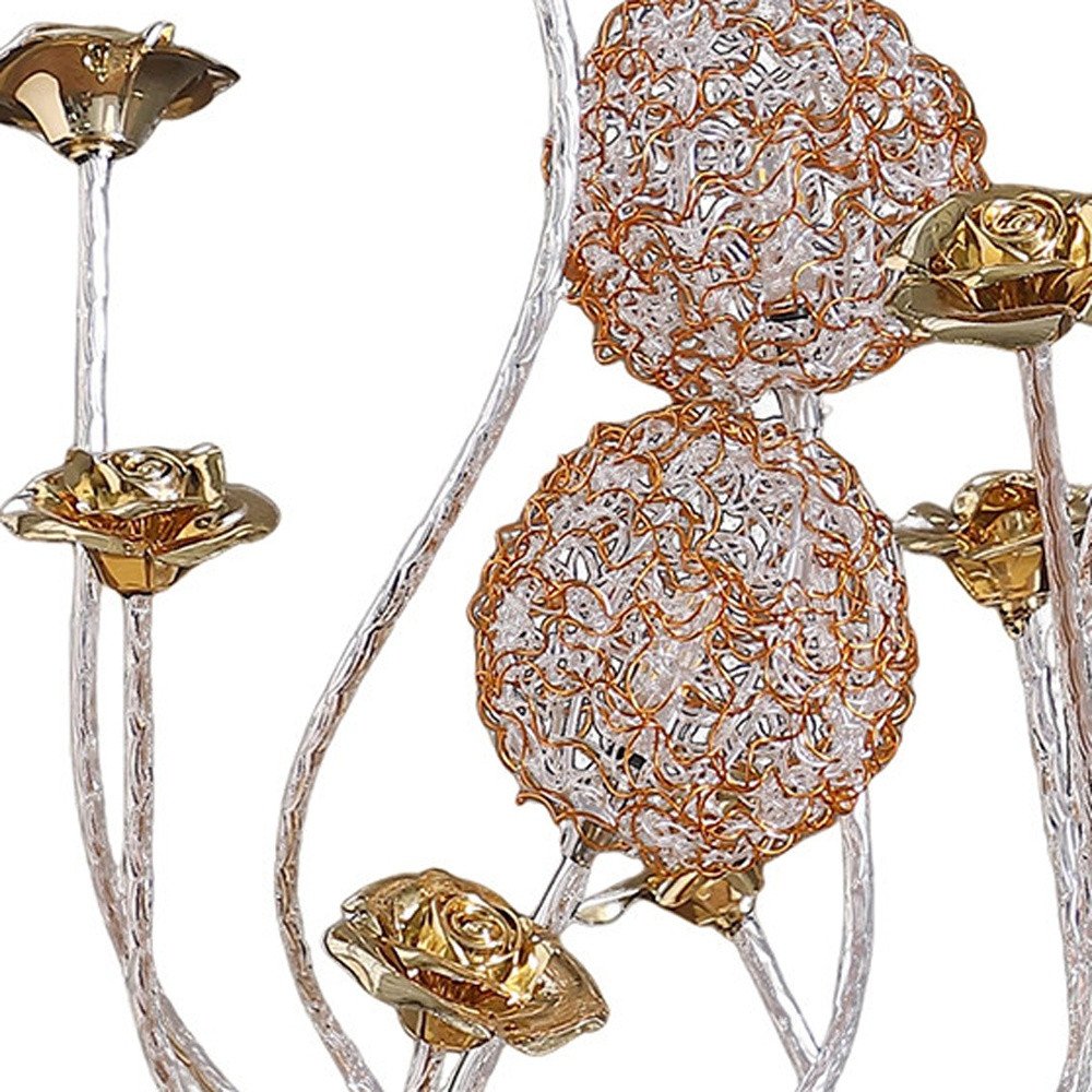 22" Silver And Rose Gold Metal And Acrylic Flowers Bedside Lamp
