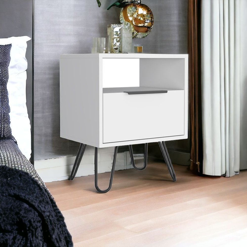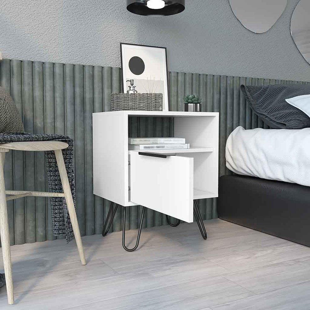 Give your room the look and feel of 5-star accommodations with this 22-inch white wood nightstand. Sturdy and durable construction from manufactured wood ensures this trusty bedside table is built to last. An easy-access shelf gives you additional storage and display space. The unsung hero of the bedroom, this nightstand is perfect for keeping a glass of water, lamp, alarm clock, jewelry, and more, close by and easily accessible. Versatile in use this nightstand would also work as a great end table in the living room, hallway, or office. 22.2-inch h x 17.7-inch w x 13.7-inch d.