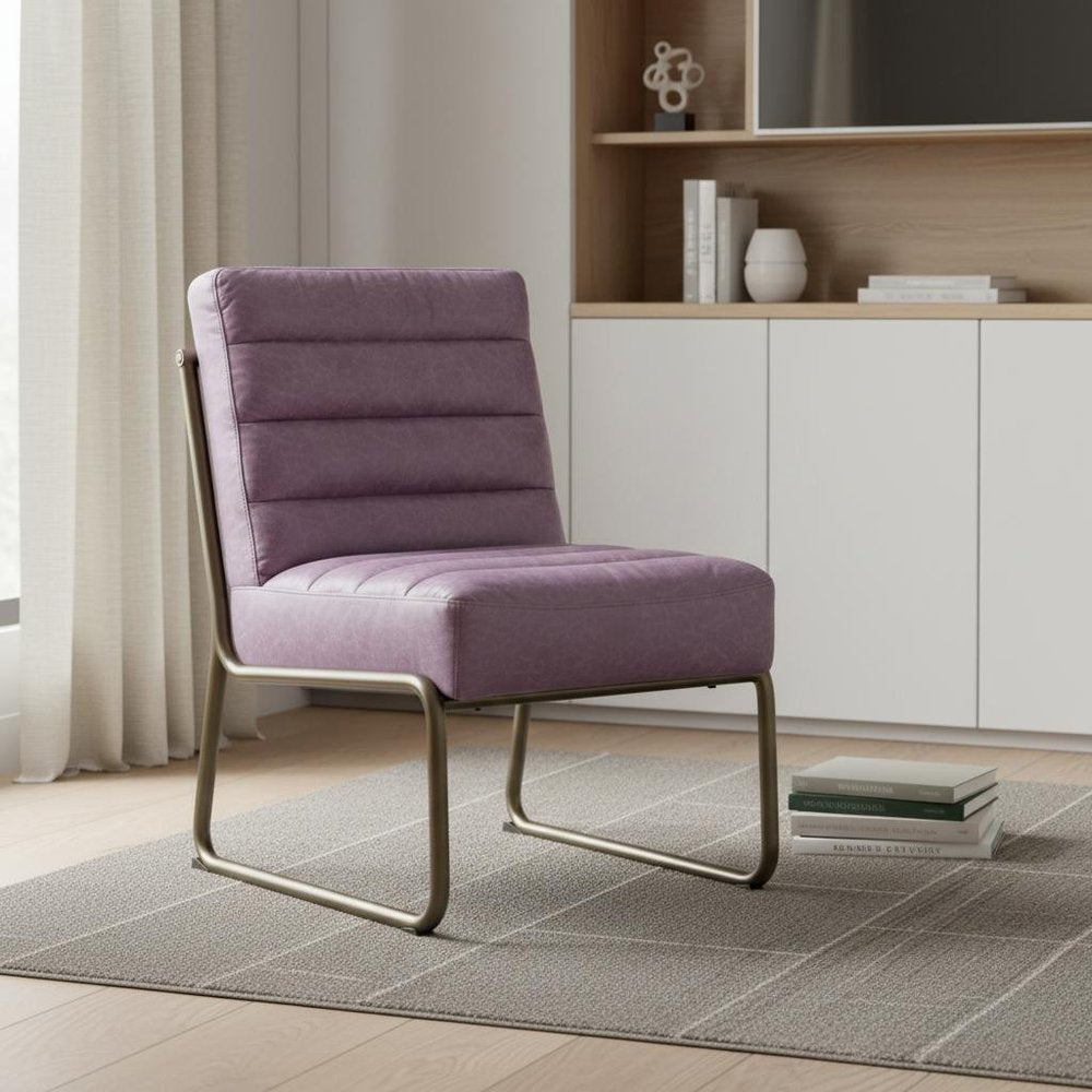 Add an air of fashion to your room and rejuvenate the space with this 22-inch wisteria and steel blue top grain leather ikat side chair. This updated and modern wisteria ikat design side chair is masterfully upholstered in durable top grain leather. The sturdy inner frame is built with high quality solid and manufactured wood, featuring a biscuit back that is accented with soft and comfortable cushioning. 33-inch h x 22-inch w x 30-inch d.