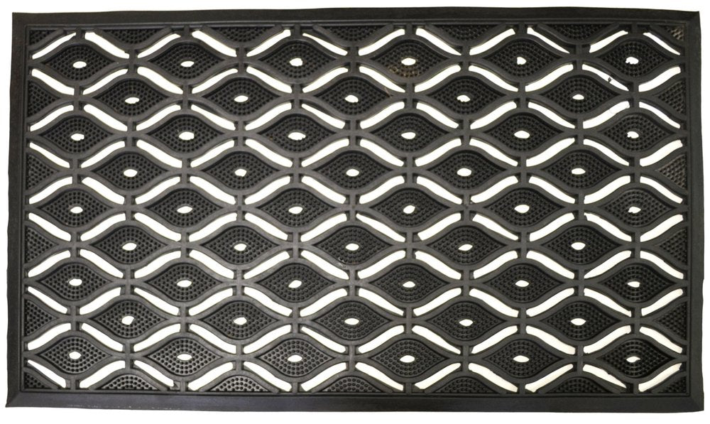 Ready to withstand heavy foot traffic, this 22-inch x 36-inch black rubber outdoor door mat is an ideal option for the front door or entrance way of your home or business. Crafted from rubber, this mat is not only functional but is a visually appealing accessory to welcome people to your home or business. Add this decorative mat to create a practical yet inviting welcome to all who enter. 22-inch H x 36-inch W x 0.5-inch D