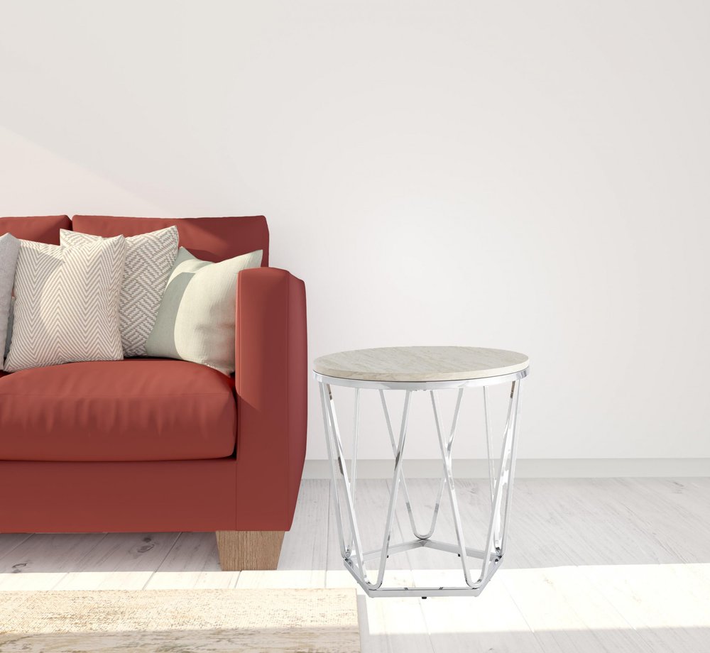 23" Silver Manufactured Wood And Iron Round End Table