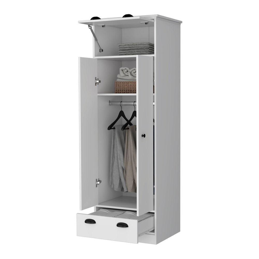 Enhance your room into a visually delightful and highly functional space with this 23-inch white drawer combo dresser. This combo dresser gives you the added bonus of both drawer storage and cabinet storage to accommodate various sizes and types of items. Its a high quality piece, made from high grade manufactured wood. The white coloration of this piece is neutral and will blend easily with most any decor. 70.47-inch H x 23.31-inch W x 19.69-inch D