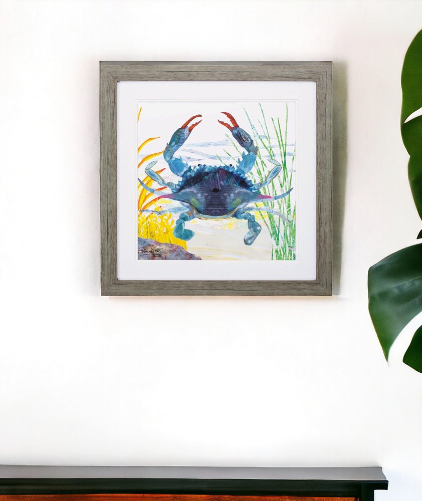 23" X 23" Woodtoned Frame Sea Creature Crab