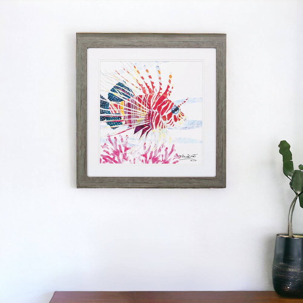 23" X 23" Woodtoned Frame Sea Creature Fish