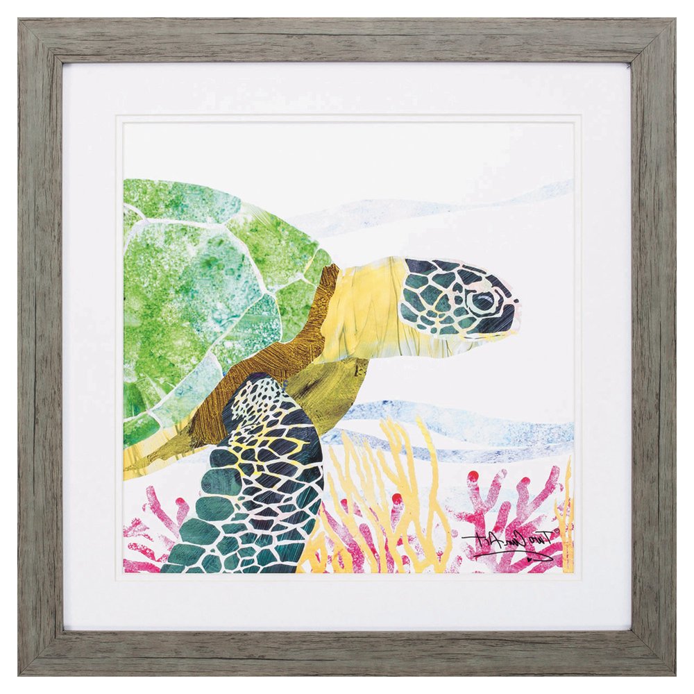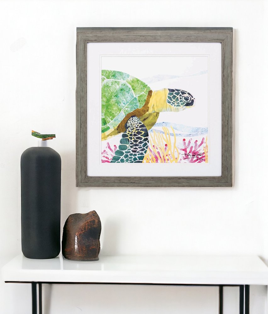 23" X 23" Woodtoned Frame Sea Creature Turtle