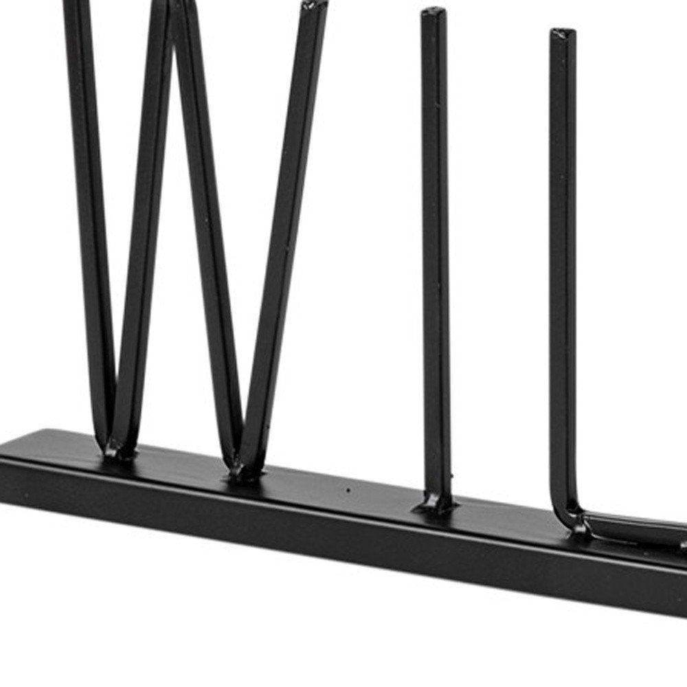 Make your love for adventure known with this fun Black Metal Wild At Heart Sign. Made from solid metal and wood, there is a thin solid metal platform atop which there are separate letters that spell the word 'Wild At Heart' where the heart is represented by a line drawn shape. The letters are in a rounded square shape and have enough space between them to keep this sign minimal and airy. The neutral colorway and the simplistic design means you can use it anywhere in your home. 5-inch H x 24-inch W x 1-inch D