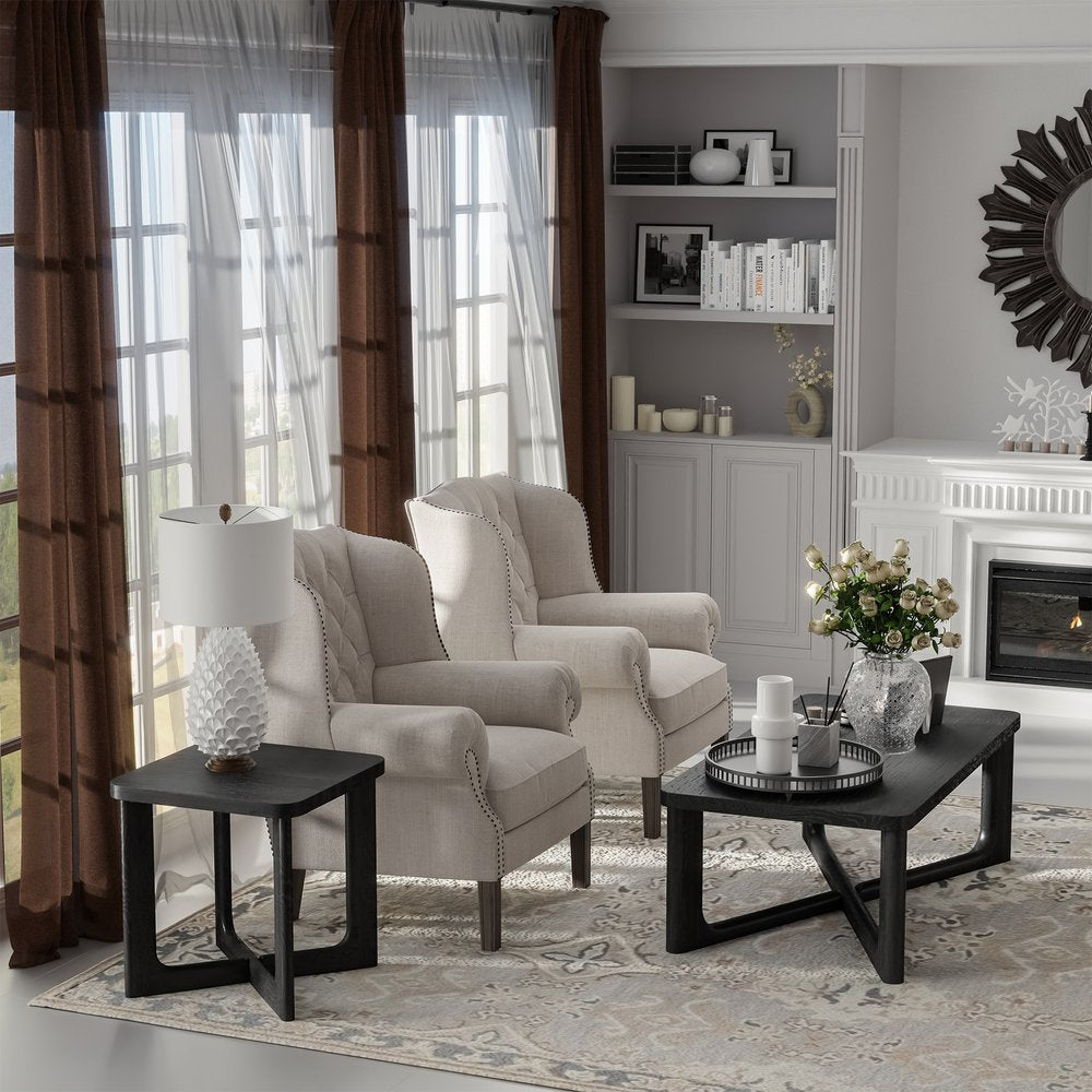 24" Black Solid Wood Square End Table