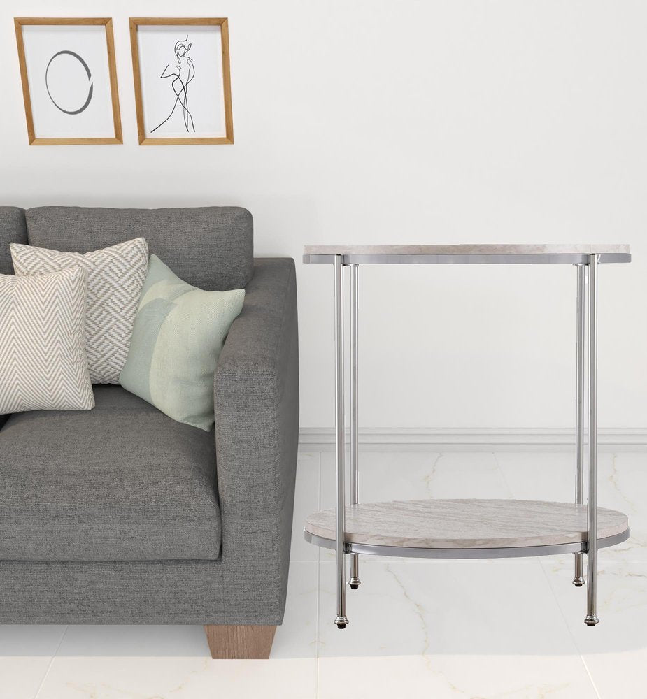 24" Chrome Manufactured Wood And Iron Rectangular End Table With Shelf