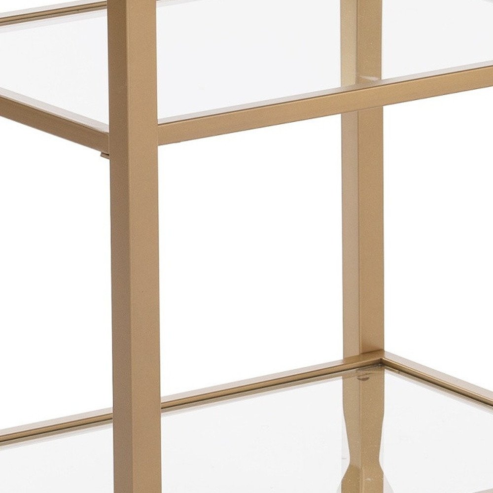24" Gold Glass And Iron Rectangular End Table With Two Shelves