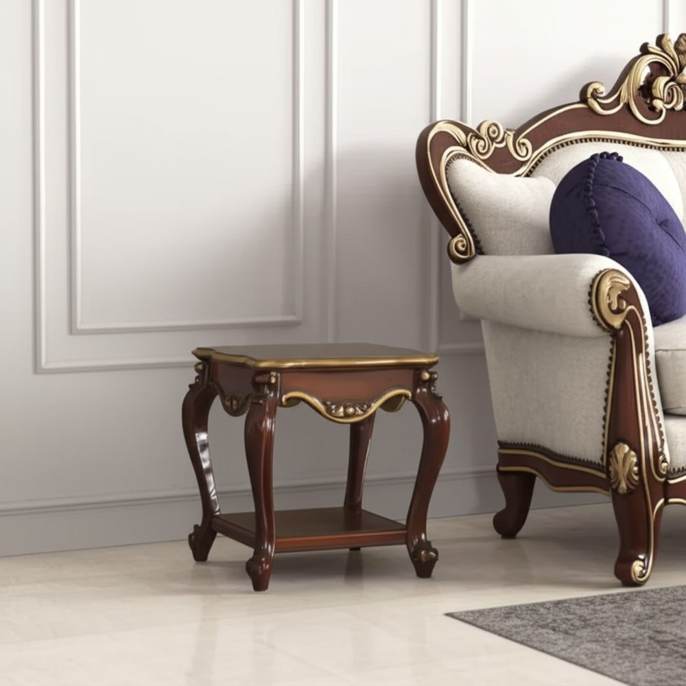 Show off your exquisite taste with this 24" honey oak solid wood and polyresin square end table with shelf. A sleek honey oak monotone color gives this polyresin and solid wood table a fresh and updated look. Help to keep your space organized with the included single shelf. An ideal location for placing your snacks and drinks, and a place to keep your lamp, frames, or other accessories. You can match it with other pieces to get the ideal look for your place. 24" H x 27" W x 27" D