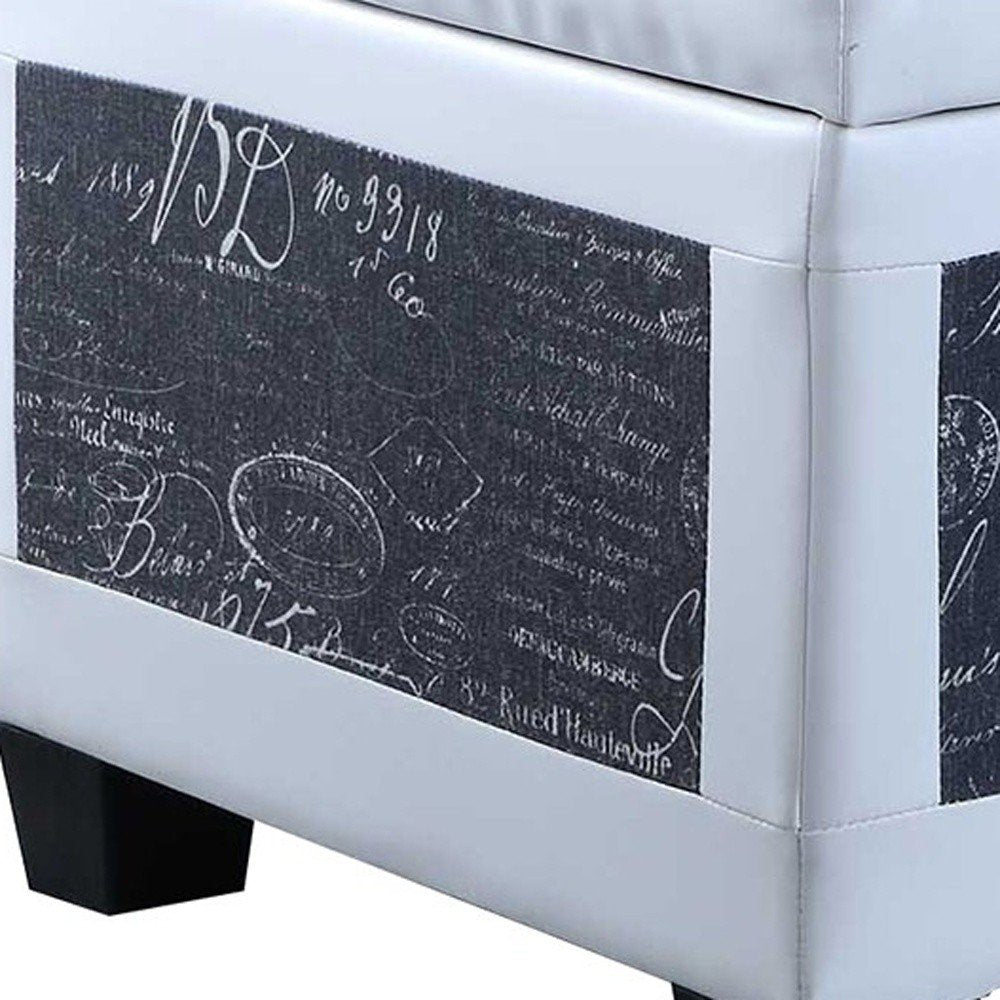 24" White and Black Upholstered Faux Leather Bench with Flip top