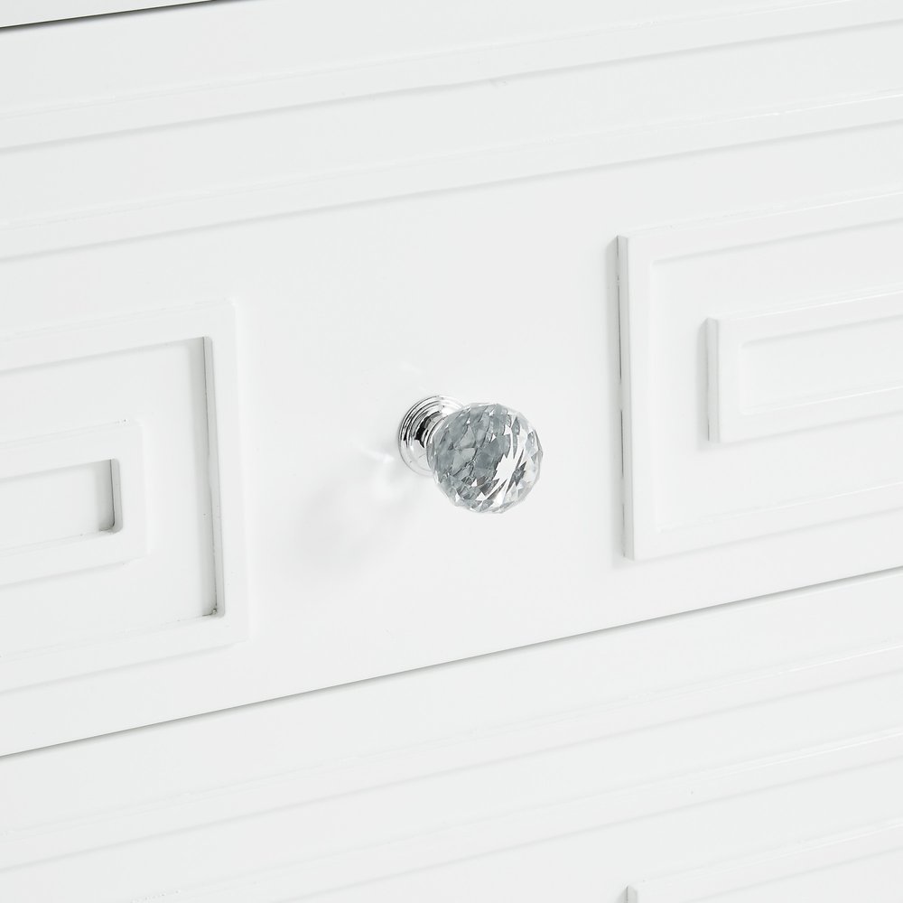 Optimize your space and add some charm to your room with the 24-inch White and clear wood and acrylic end table with two drawers. The glossy White lacquered finish wood makes a chic pairing with the high quality, clear acrylic of the legs. Includes 2 easy open drawers for storage of the small essentials. A great accent on either side of the sofa or bed, this adorable end or side table is just what you need. You can also use it as an entryway table to hold your keys. 24-inch h x 27-inch w x 18-inch d.