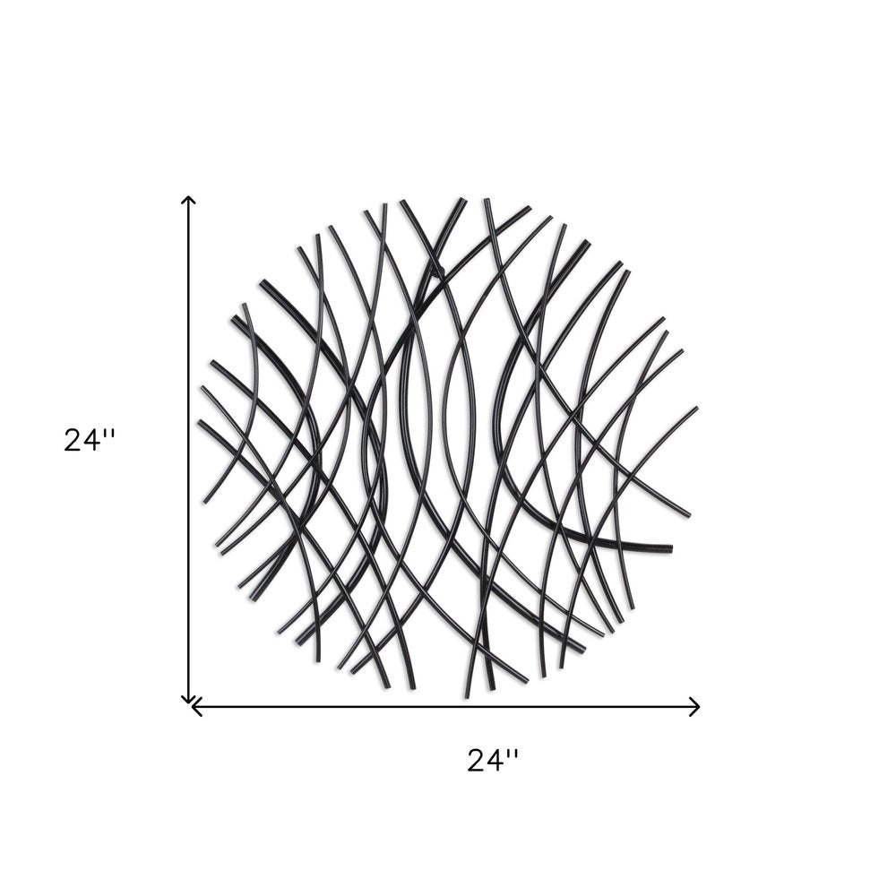 24" X 24" Black Metal Circle Abstract Hanging Dimensional Sculpture