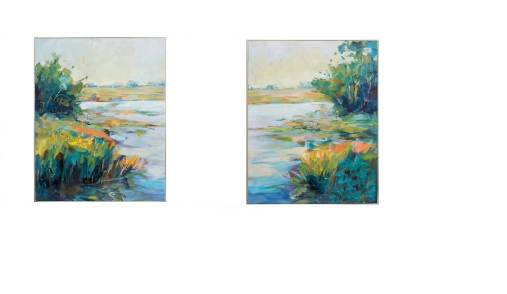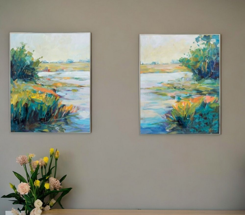 24" X 30" Ligth Wood Toned Frame Marsh Colors (Set Of 2)