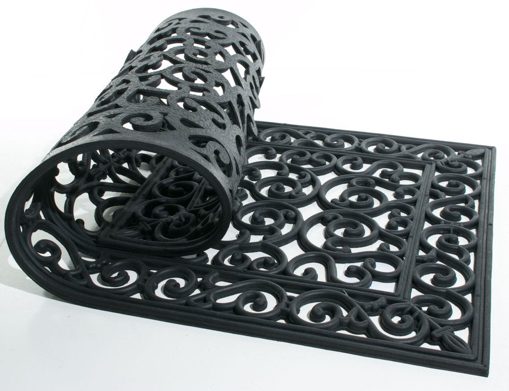 Ready to withstand heavy foot traffic, this 24-inch x 48-inch black rubber outdoor door mat is an ideal option for the front door or entrance way of your home or business. Crafted from rubber, this mat is not only functional but is a visually appealing accessory to welcome people to your home or business. Add this decorative mat to create a practical yet inviting welcome to all who enter. 24-inch H x 48-inch W x 0.5-inch D
