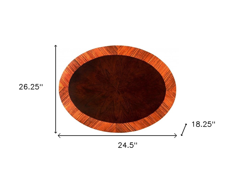 Add handsome, fashionable design to your living space with this 25-inch brown wood oval coffee table with drawer and shelf. This table is made from solid and manufactured wood in a brown color throughout the base and top. Help to keep your space organized with the included single shelf. This oval table is an updated take on a classic. It has an attractive design that will definitely breathe some fresh air into your interior. 26.25-inch h x 24.5-inch w x 18.25-inch d.