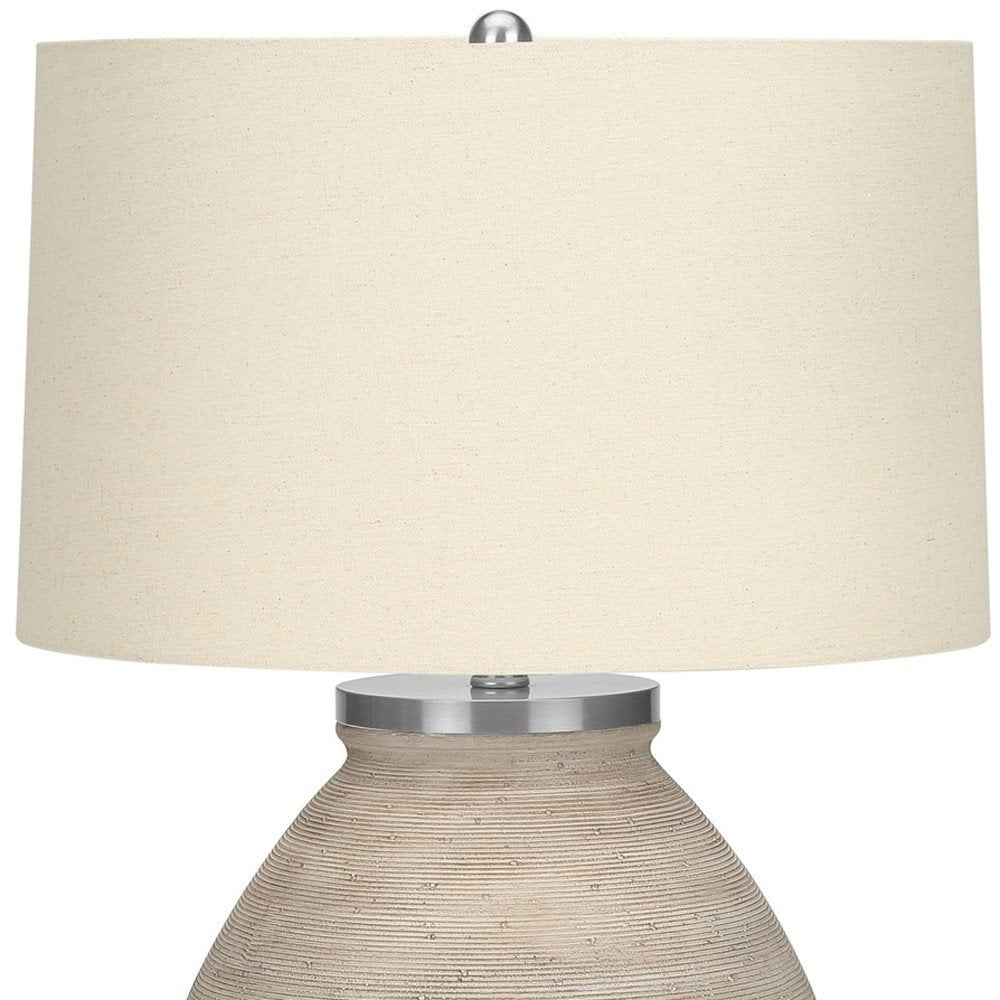 25" Cream Concrete Round Table Lamp With Beige Drum Shade