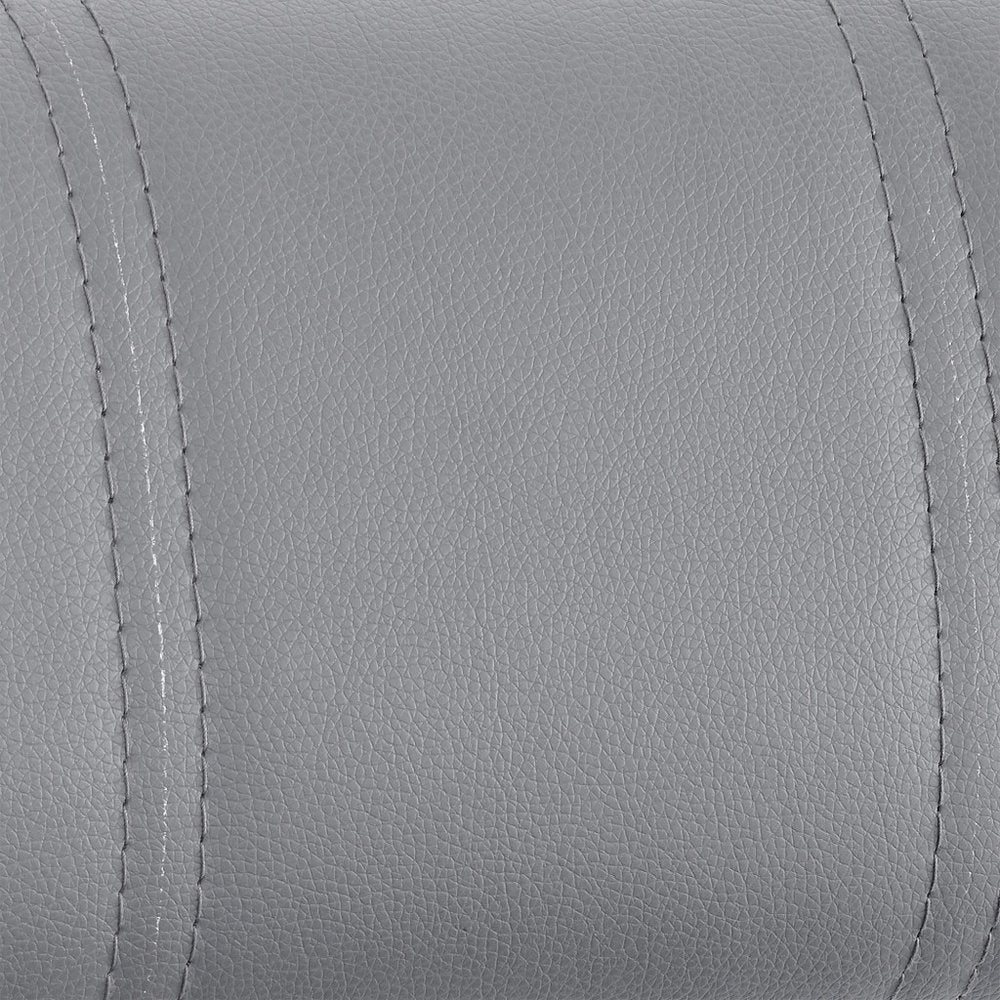 Comfortable enough to sit in for awhile, this 44" gray faux leather and iron swivel adjustable height bar chair will transcend the look of your room. A brushed stainless steel iron frame is finished off with a gray faux leather seat that is the epitome of quality construction and design. The round shape of the seat combines with a full back to give this chair a comfortable and fashionable look. A great seating option, this stool will bring a unique look to any room. 44" H x 17" W x 22" D