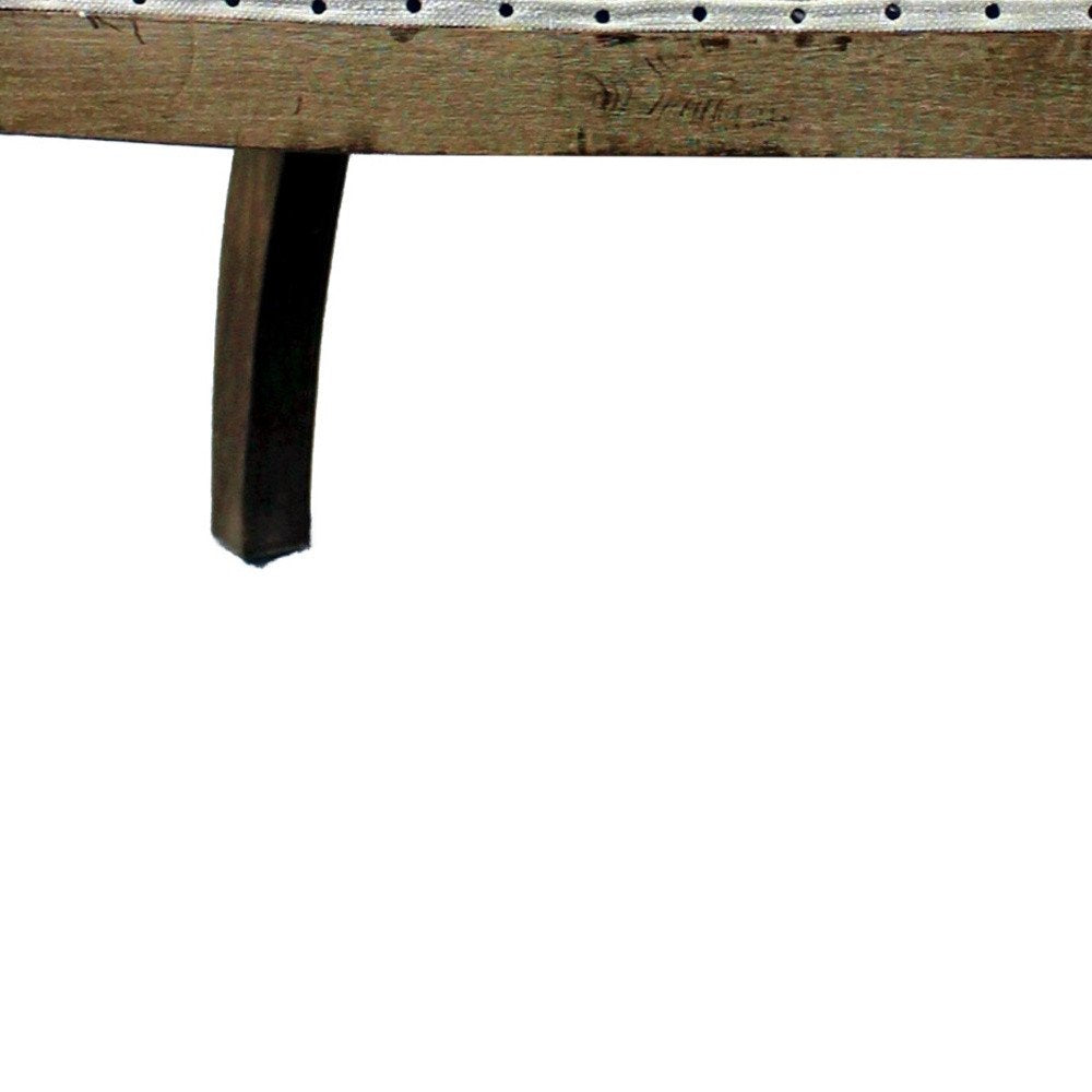 Casually elegant and fully functional, the 25-inch ivory and brown fabric and solid wood dining arm chair adds a touch of panache to any set up. Giving the chair stability and structure, the legs and frame are constructed with high quality solid wood, and features ivory heathered upholstery on the front and an open frame and brown burlap on the back. This chair includes high end detailing such as nailhead trim to wow you and your guests. 39-inch H x 25-inch W x 28-inch D