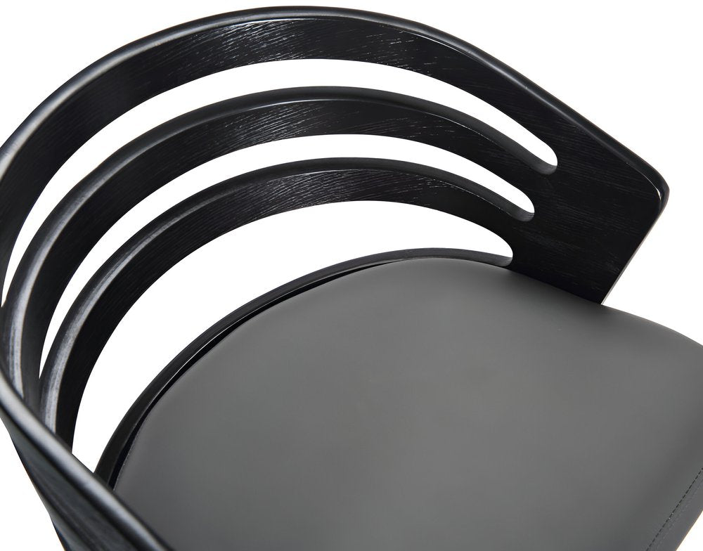 Comfort and design come together nicely in this 26-inch gray and black fabric and iron low back counter height swivel bar chair. A black iron frame is finished off with a gray fabric seat that is the epitome of quality construction and design. The round shape of the seat combines with a low_back to give this chair a comfortable and fashionable look. Designed with armrests for your comfort, this chair also features a footrest for comfort and convenience. 35-inch h x 19-inch w x 19.5-inch d.