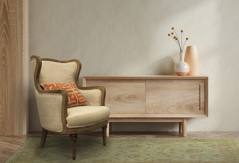 26" Ivory Linen And Natural Solid Color Arm Chair