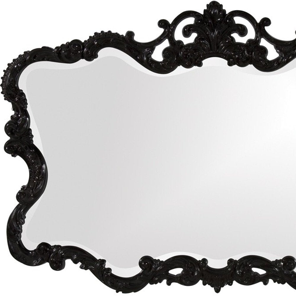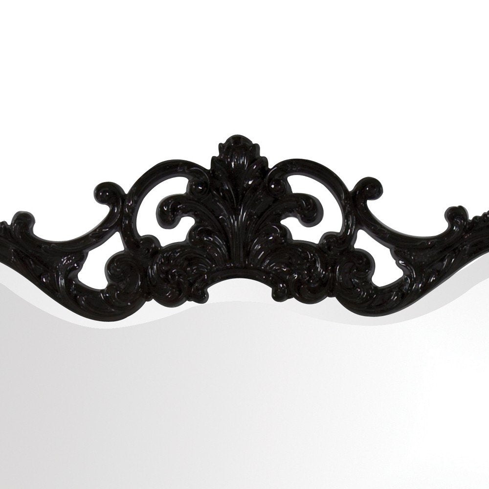 Add a touch of pizazz to any wall in your home with this 27-inch black ornate scroll framed accent mirror. The frame is made from a heavy duty polyresin with lots of detailed carving and scrollwork that is finished in a chic black color. This unique vintage baroque styled mirror will make a great focal piece in most any room in your home. 27-inch H x 38-inch W x 1-inch D