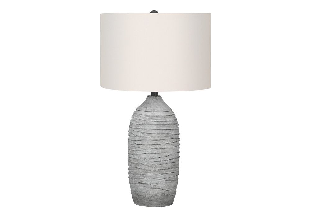27" Gray Cylinder Table Lamp With Ivory Drum Shade