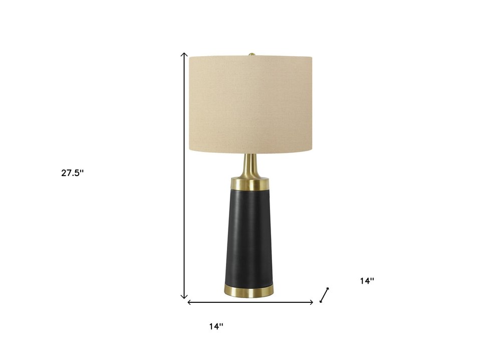 28" Black and Gold Metal Cylinder Table Lamp With Beige Drum Shade