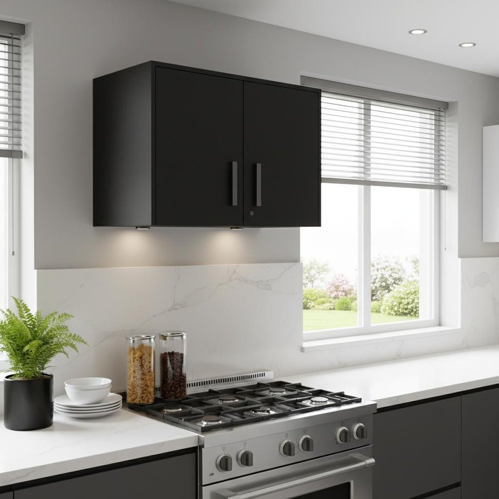 Add a fashionable storage option to your space with this 28-inch black wall mounted accent cabinet with seven shelves and six drawers. Equipped with 6 easy open drawers and storage cabinet for practical and good looking storage. This beautiful accent is made from sturdy particle board. Storage vessels don't have to be unsightly. Increase your storage space and the fashion quotient of your room with this hard wearing, versatile, and good looking cabinet. 19.69-inch H x 27.56-inch W x 15.98-inch D