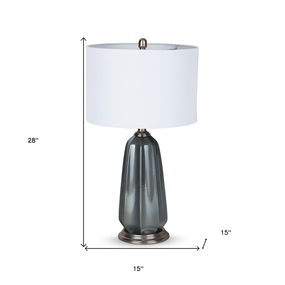 Bring of level of elegance and freshness to your space with this high quality 28-inch blue gray ceramic led table lamp with white drum shade. A gorgeous blue ceramic base brings just the right amount of pizzazz to this fabulous lamp. The white shade has a drum shape and is made from fabric. This standard table lamp is designed to provide general lighting to the area. The light that this lamp throws is soft and warm to elevate the look of most any space in your home. It is perfect for virtually any decor. 28-inch H x 15-inch W x 15-inch D