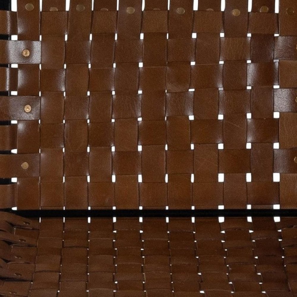 28" Brown and Black Leather and Iron Bar Chair