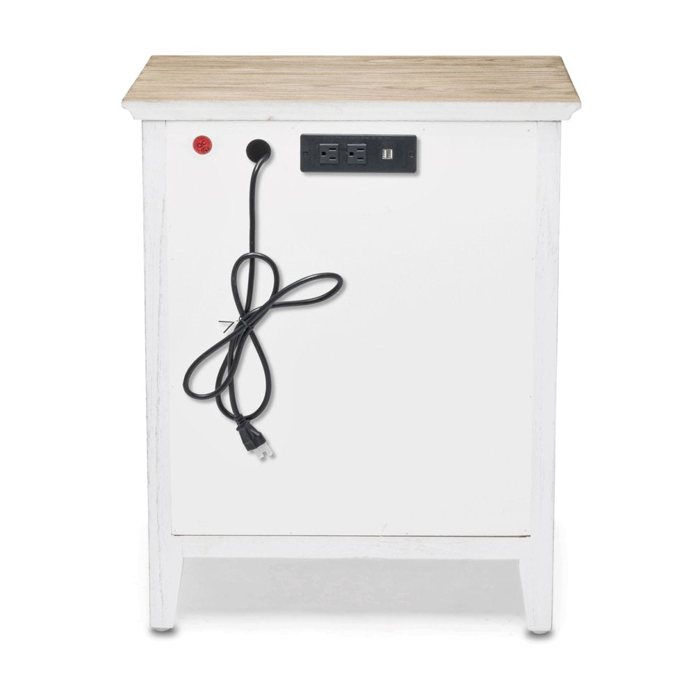 28" Natural And White Solid Wood Distressed One Drawer Nightstand With USB Port