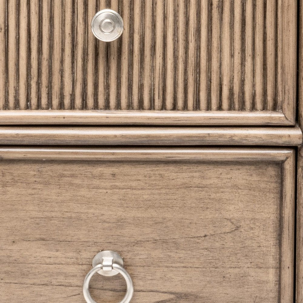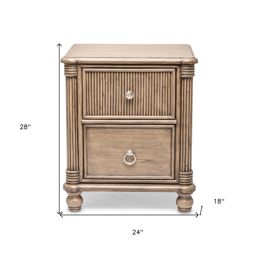 28" Natural Solid Wood and Wicker Ribbed Texture Two Drawer Nightstand With USB Port