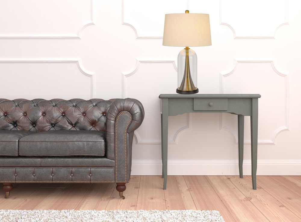 Add a bright anchor to your room with this 29" clear metal table lamp with white empire shade. The base of this lamp is made of clear metal. Includes a white fabric, empire shaped shade, making this a fashionable piece that will complement most any interior. This standard table lamp is designed to provide general lighting to the area. Use this lamp anywhere and elevate the look of the whole space. Bring some lite and good vibes into your space with this updated and stylishly designed lamp. 28.5" H x 17" W x 17" D