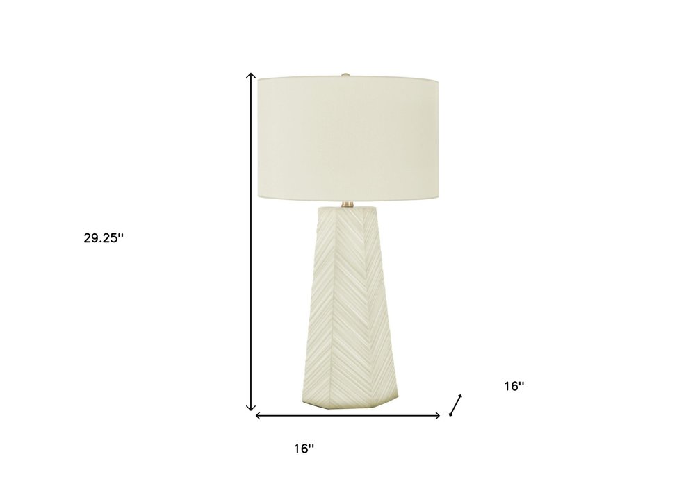 29" White Ceramic Geometric Table Lamp With Ivory Drum Shade