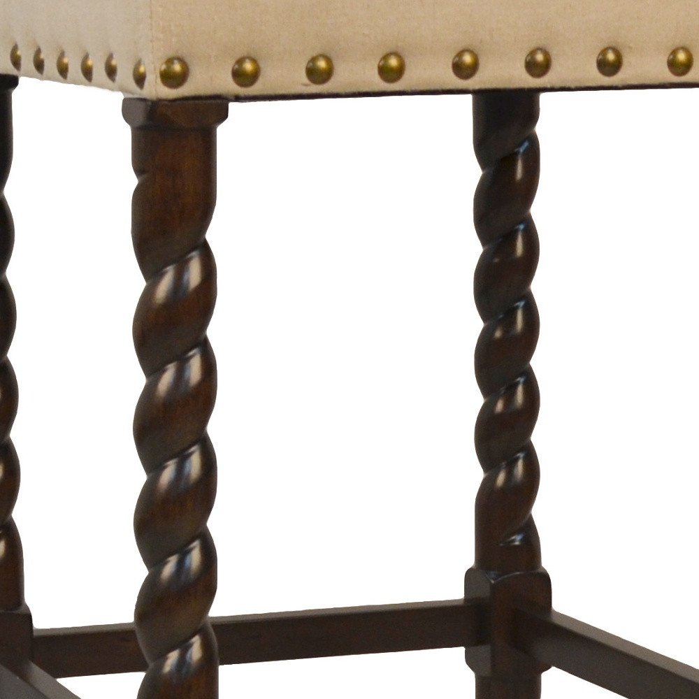 30" Cream And Espresso Solid Wood Backless Bar Height Bar Chair
