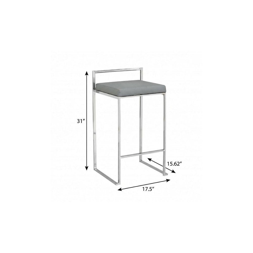 31" Gray And Silver Faux Leather And Solid Wood Backless Bar Height Bar Chair