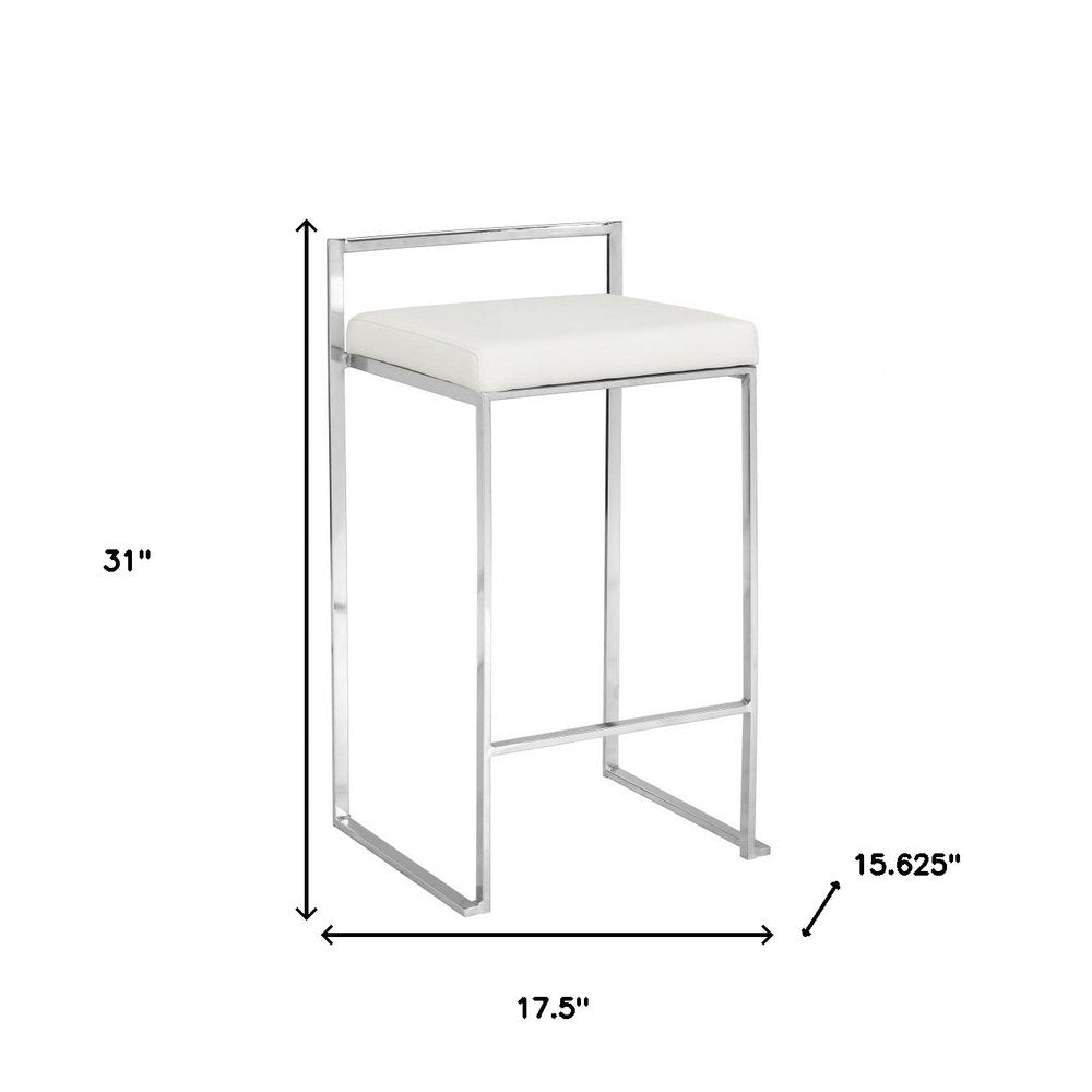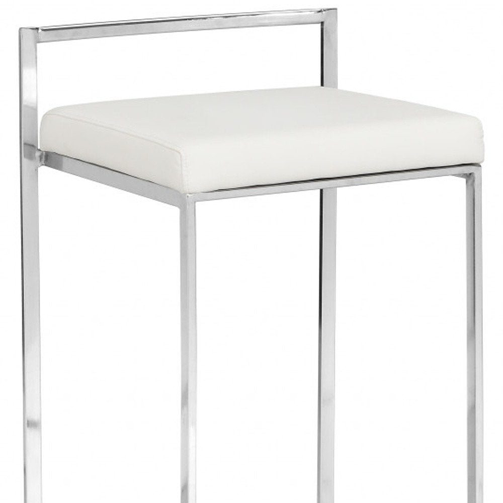 31" White and Silver Faux Leather and Solid Wood Low Back Bar Height Bar Chair