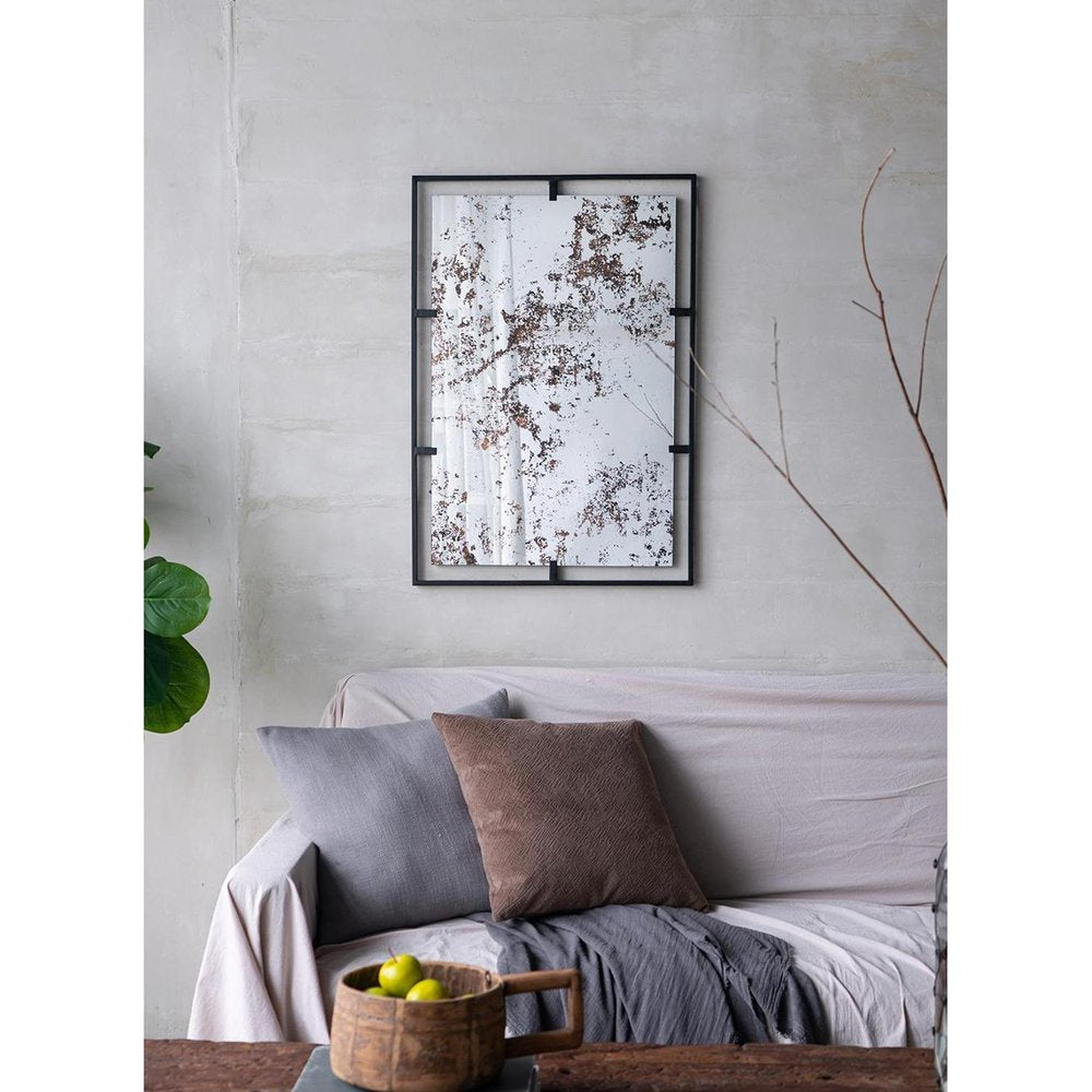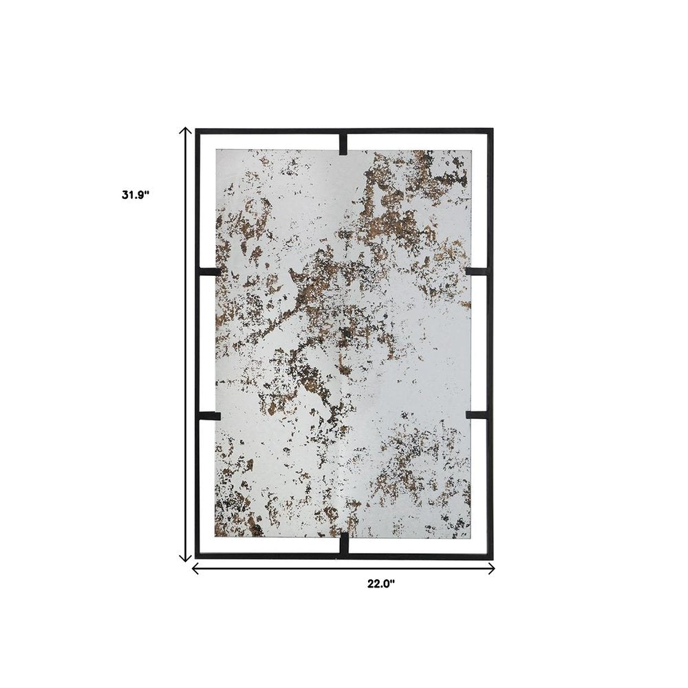 Beautify your space with this 32-inch black iron framed antiqued glass accent mirror that is both original and unique at the same time. Inside the black metal frame there is a rectangle shaped antiqued glass mirror that gives this piece a unique sense of style. An antiqued and distressed mirror finish gives this piece lots of vintage charm. 31.9-inch H x 22-inch W x 0.6-inch D