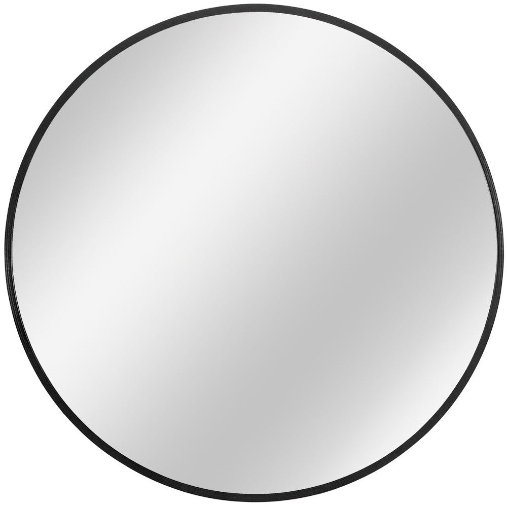 Beautify your space with this 32-inch black round metal framed accent mirror. The inlaid frame crafted of metal and finished with does not apply hue, creating an elegant appeal. Framed with metal, this mirror will bring practical style and fashionable design to your space. Featuring a transitional style that will be practical and fashionable. This mirror will be a great useful addition to your home but will also help elevate the space in the room. 32-inch h x 32-inch w x 1.6-inch d