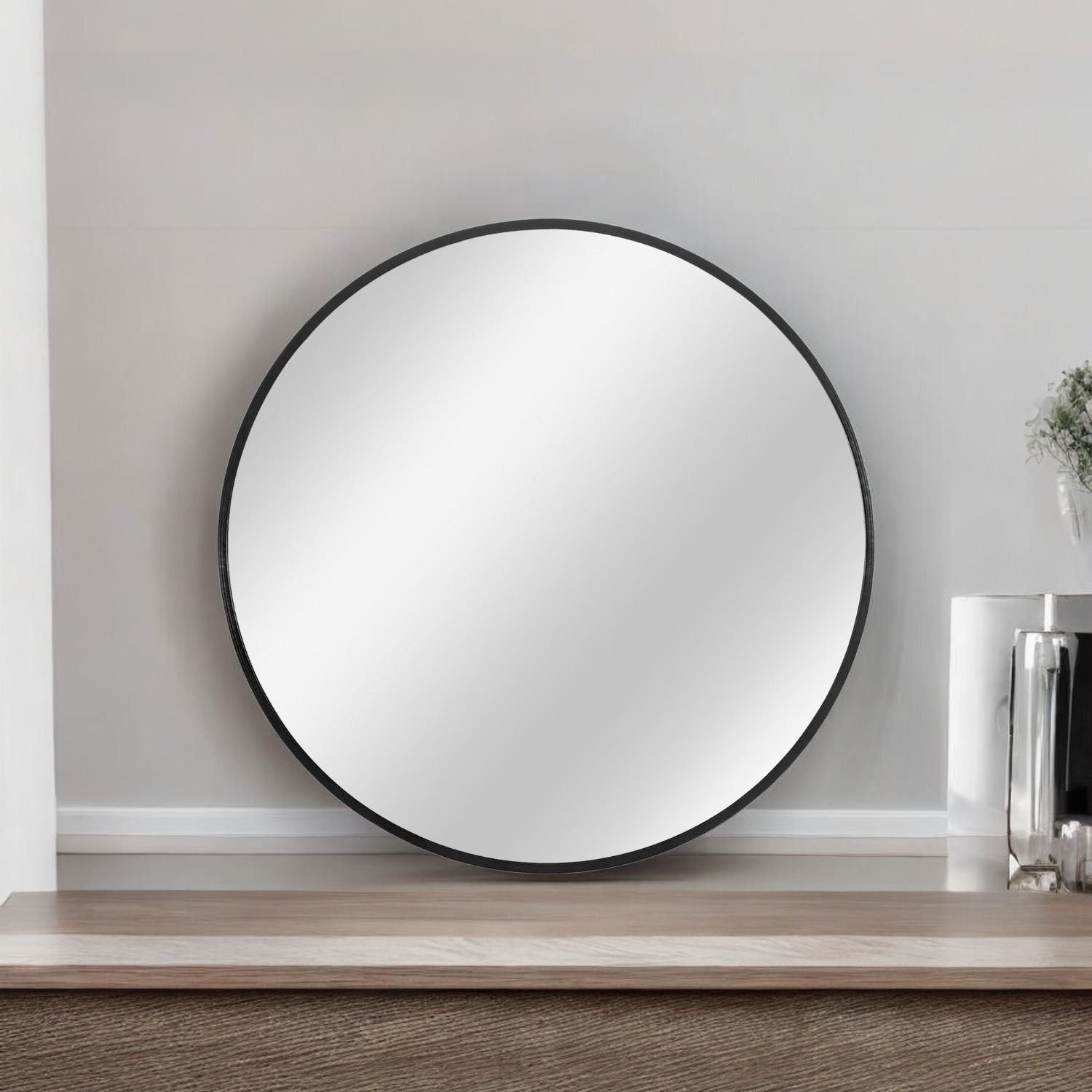 32" Black Round Metal Framed Accent Mirror