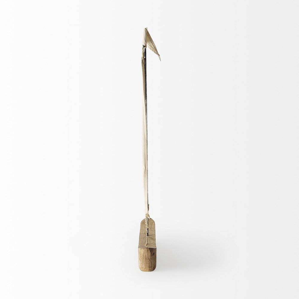 Set sail with this 32-inch brown wood and fabric sailboat sculpture that will add a nautical / coastal decorative accent to your decor. This charming decorative accent is expertly made of high grade wood and fabric in a brown and beige coloration. The hull of the boat is crafted from wood and with a rustic natural look. On top of the hull there is a metal rod on which cream colored fabric acts as the sails. These sails are connected to the hull through a very thin rope to give this a realistic yet minimalist modern depiction of a sailboat. 32-inch H x 22-inch W x 2.3-inch D